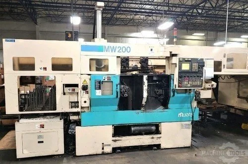 (1) 1999 MURATEC MW-200G CNC TWIN SPINDLE TURNING CENTER WITH OVERHEAD GANTRY LOADER AND (20) STATION PALLET HEAVY DUTY STOCKER FEEDER TABLE AND 2ND OPERATION (1) 1999 MURATEC MS-100G CNC SINGLE SPINDLE WITH FANUC 18iT CNC CONTROL AND ALL OPTIONS AND ACCESSORIES FOR PRODUCTION. This is Muratec's Best Selling Job Shop Machine and is in Low Hours Condition with 3- 10" 3-Jaw UBL Pull Back Chucks 30 HP. 2-Speed Geared Spindles, Full Box Way Design, Murata Overhead Gantry Loader Machine. Versatile for larger Parts and (2)16 Lbs. Parts on Gantry Loader or Max (1) Part 36 Lbs. Overhead Gantry Part Weight Capacity. Muratec has Special Patented W/S Turret Bar Design for Casting Production Turning and Accuracy. Two 10-Station Turrets with High Speed Index, Fanuc 31iT CNC 4-Axis control, Fanuc @AC High Torque Servo Drives Motors, Spindle Motors, 35- 3500 rpm max. (2) 10" 3-Jaw UBL Pull Back Chucks MW-200G (2) 10" Pull Back Chucks (1) 10" Pull Back Muratec MS-100G, Special M-Code Air Blast & Coolant Thru Chuck Center Option Installed. Muratec Factory Standard Options Each Machine Included: (1) MW-200G High Speed Muratec Overhead Gantry Loader / MS-100G Overhead Gantry Loader (2) High-Torque @P 30 HP. 2-Spindle Motors MW-200G (1) @P 30 HP. MS-100G Spindle Motor (2) PSI High Pressure Coolant Pumps Each Machine (2) Air and Coolant Mixing Blow Through Spindle Coupling (1) Work Clamp Sensor (1) Work Location Confirmation Sensor (2) Foot Switches for Chuck Operation External Work Number Search Auto Tool Shift Function Tool Setter (both sides) Total Counter Daily Counter Check Counter (2) Spindle Load Meters (2) Spindle Orientation(4 position) Signal Tower (red/yellow/green) Part Program Storage & Edit (40m) 125 Registrable Programs Custom-macro B Tool Geometry and Wear Offsets Tool Offset Value Program Input Tool Nose Radius Compensation Run Hour Display Inch/Metric Conversion (2) Hydraulic Chuck Cylinders Tool Monitor (2) -20 Pallet Heavy Duty Stocker Feeder Tables All Available Tool Holders / Multi-Tap Transformers GANTRY LOADER AND TURN-A- ROUND STATION CHUCK JAWS: • Factory Tool Holder Package with Machines Special Reduced Price: 1999 MURATEC MW-200G / 1999 Muratec MS-100G: $ Separate or Pair Price on Request. Machines have Only MW-200G 8,491 / MS-100G 8,250 Cutting Hours * New Ordered Cost $400,000 With All Options! * Complete Training and Installation Available on Request. * Experience Serviceman available to contract. * Full Costs on Prep & Shipping Rate's Very Good! TERMS: Payment in Full Prior to Shipping. F..O.B.: Machine Prep & Loading Required. I thank you on your review and consideration on this Special Muratec MW-200G/ MS-100G Cell in shop installed for Inspection opportunity. Sincerely, Mark V. Murphy