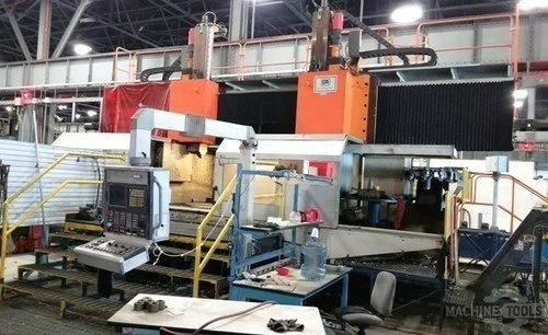 2007 DTI HOGGER II CNC Twin Ram VTL with 100” table dia x 27” Height CNC controlled Heavy Duty Double Column Twin Ram KENNEMETAL KM-80 Tooling with 4-Station Per Ram and 60 ATC's Per Ram Machine has High Pressure Coolant Thru Tool Holders Special High Horsepower 160 Spindle Drive Motors, 12" x 12" Cross Section Ram Size, Ram Stroke 35" 33,000 Part Weight Cap. *Machine is for Heavy Duty Hogging Cutting or Excellent for Hard Turning Exotic Materials Max Cutting Ram Full Torque 53,000 N. Full Enclosure Chip Conveyor, Installed for Inspection.