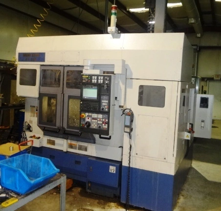 2001 MORI SEIKI RL-203 CNC Twin-Spindle Turning Center with Overhead Gantry Loader System And All Options Fully Installed for Inspection & Testing. <br> <br>Chuck Size (2) 8"-3-Jaw Included<br>*Optional 10" 3-Jaw Capable<br>Max Swing Over Bed 15.59"<br>Max Turning Diameter Max.13.39"<br>Max Machining Length 7.09"<br>Distance Between Spindle Centers 22"<br>Main Motor 15/20 Hp. High Torque Cutting. <br>Spindle Speed 45 - 4,500 RPM<br>(2) 10-Station Tool Turrets<br>Spindle Bore 2.44"<br>Spindle Nose A2-6<br>Rapid Traverse Rates 945 IPM<br>X-Axis Travel 7.48"<br>Z-Axis Travel 9.05"<br>Machine Weight 12,600 lbs.<br><br>Machine Loader Gantry Robot Specifications: <br>Work piece Diameter Standard .08 - 9.8"<br>Work piece Weight 12 lbs. x 2<br>Work piece Length 0.5 - 4.7"<br>Stocker Pallets 14<br>Stocker Weight Pallet 330 lbs.<br>Stocker Height 19.7"<br> <br>FEATURES:<br>MORI MSG 803 MAPPS CNC Conv. CONTROL<br>Twin Spindles & Twin 8 Station Turrets<br>(2) 8" 3-Jaw Kitagawa Hydraulic Chucks <br>Optional 10 Capacity Capable on Chucks<br>LG-10 Gantry Robot with 14 Pallet Stocker Feeder <br>Rear Discharge Chip Conveyor<br>Spindle Chiller Unit<br>Mori-Seiki MAPPS Conversational Programming <br>2-QTS - Quick Toolsetter Units<br>MPH 350 PSI High Pressure Coolant Pumps<br><br>Special Price: .................. $ Please Call