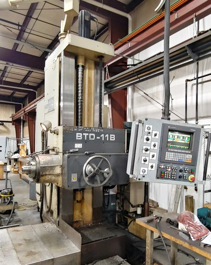 Murphy Machinery is pleased to offer the following in plant fully Installed for Inspection<br><br>1988 MFG. Toshiba BTD-11B CNC Table Type CNC Boring Mill 4.33" with Allen Bradley Series 9 CNC Control Fully Installed for Inspection on Request.<br><br>4.3" Bar Diameter<br>ISO No#50 Taper<br>2-Speed Gear Box<br>Low Speeds 8-400 RPMs<br>High Speeds 400-1600 RPMs<br>Table Cross Travel ( X-Axis ) 98.5"<br>Table Longitudinal (Z-Axis) 5.9"-57"<br>Table Area 59" x 98.4"<br>Max Table Load 17,600 Lbs.<br>Floor Space 244" x 288"<br>Machine Weight 48,400 Lbs.<br><br>Equipped With:<br>Air-Lift Rotary Table<br>All Extra Angle Fixtures and Tooling Available <br>for This Machine *Confirming List in Process!<br><br>Special Offered Price:......... $ Please Email or Call.<br><br>I look forward to reviewing questions and providing any additional information on Request.<br><br>Sincerely,<br>Mark V. Murphy<br>Murphy Machinery Sales, Inc.<br>Office: 262-534-4124<br>Mobile 414-520-0843