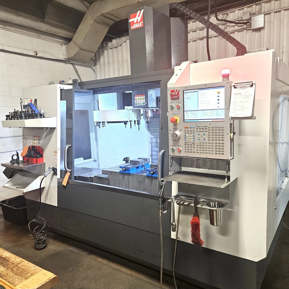Whips, USB, Heavy Duty Spiral Chip Auger, Remote Control Jog handle, Coolant Tray, Assorted tooling package Included in Photos, Machine Vices on Table in Photos Included.